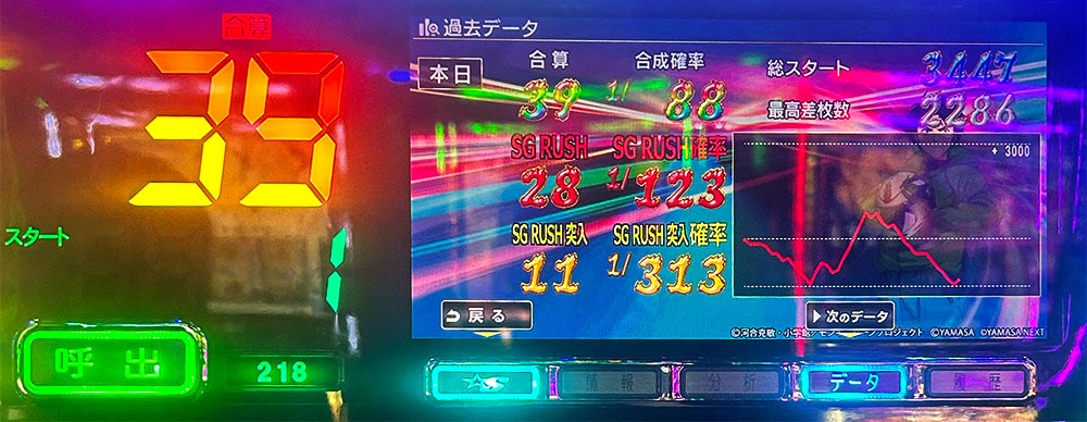 最近のパチスロの腹立たしいのは、マイナス域を推移していても、朝から直滑降していても、閉店時には大逆転がありえること。前半の動きは設定関係なし。必要なのは忍耐のみ。