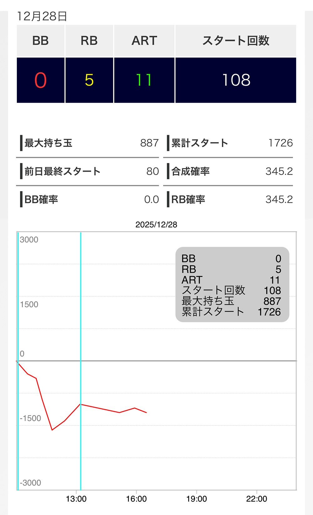 なぜここで止めなかったのだろう?続けてしまいました。『損切り』が心底苦手な私です。朝から直滑降。ただひたすらお金をパチンコ屋に献上しているだけ。