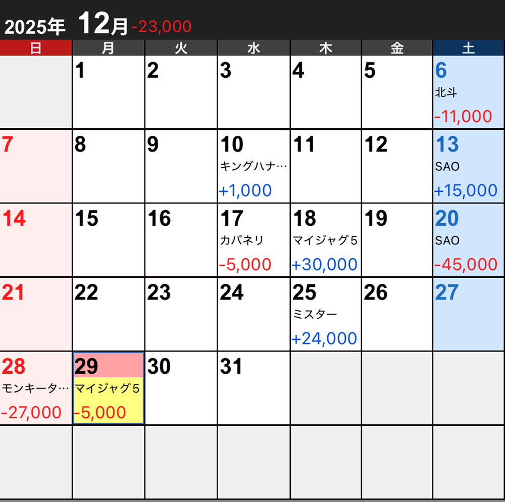 パチスロ、ノートPC購入費、通常の年末の出費、デイトレの負け分…12月の支出がエゲつない額になってしまいました😨-500kくらい逝ったかも…🤮