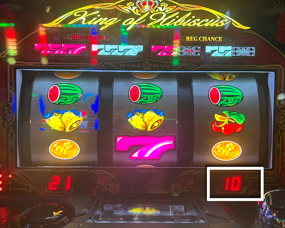 結構な金額です。過去のハナハナ実戦からすると、私は1日10回はスイカを取りこぼすので100枚=2000円の損😱エグ