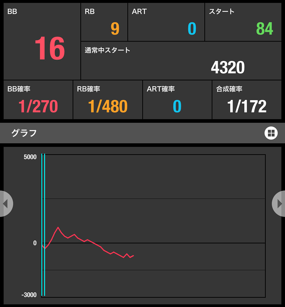 良番を引いたら打とうと思っていたマイジャグ3台全滅だったので、この日はどうやっても勝てなかったようです。