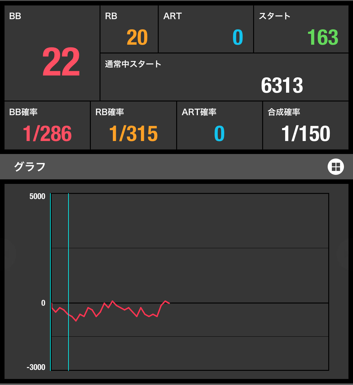 設定どうあれノーマルタイプは朝一早めに当たってくれないとやる気が削がれます。例え設定6でも終日回せは287Gのハマりはありえますが、朝一の場合はストレスが溜まる不思議。