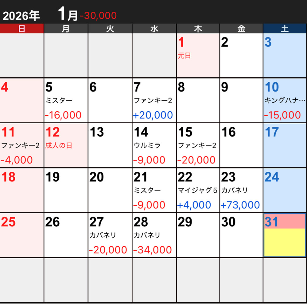 パチスロ収支1月