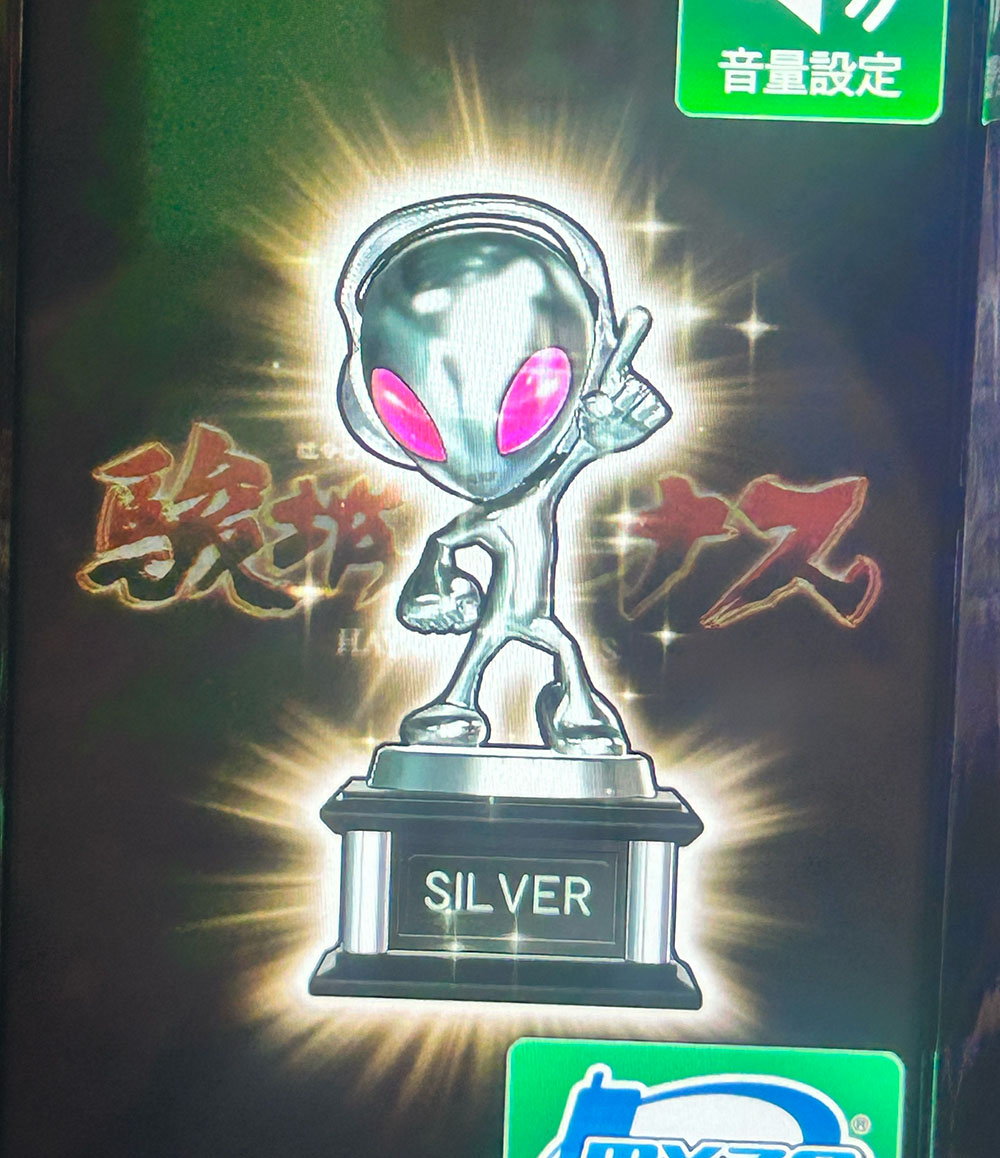 ST中の高確60%や66%は通らないのにこういうところでは当たる。緑高確(66%)を3連続で外して終わったST後に銀トロフィーが出て設定3以上確定。設定による継続率あるんじゃないか?と思うほどやれないST。