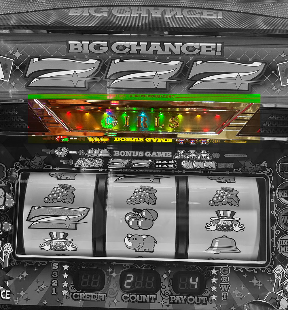 筐体デザインだけで言えば、マイジャグに次いで好きかもしれません。BIG時の↑のランプの光り方はとても綺麗です。