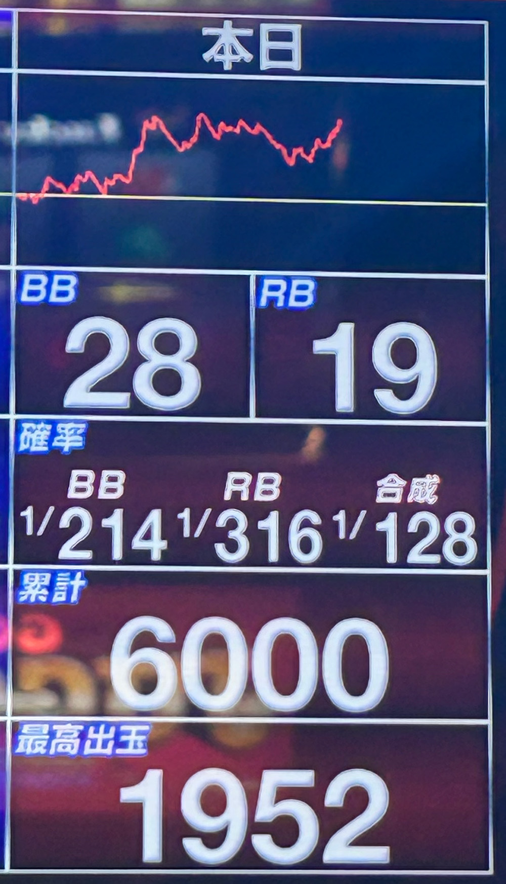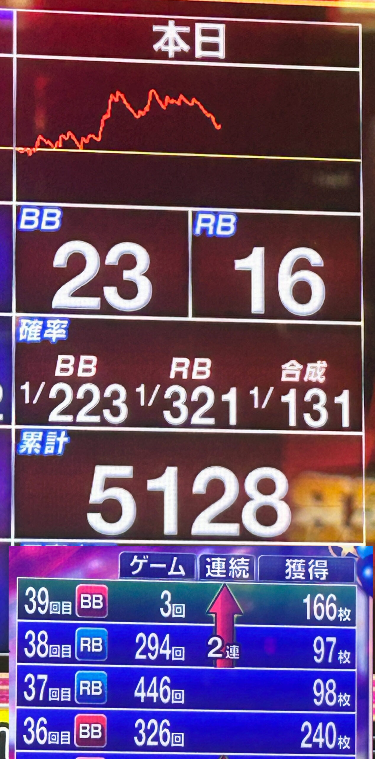 • 合算:1/128(設定5〜6)