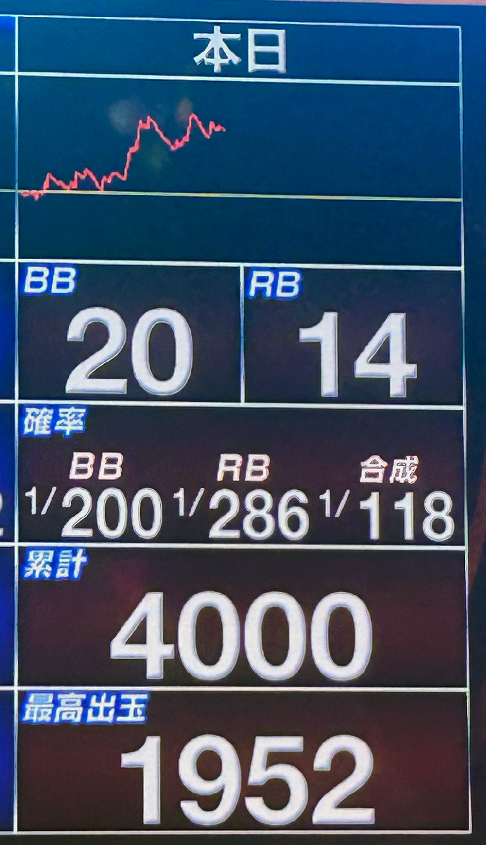 この数字なら高設定と判断しても良いと思った4000G。問題は果たして勝てるのか?