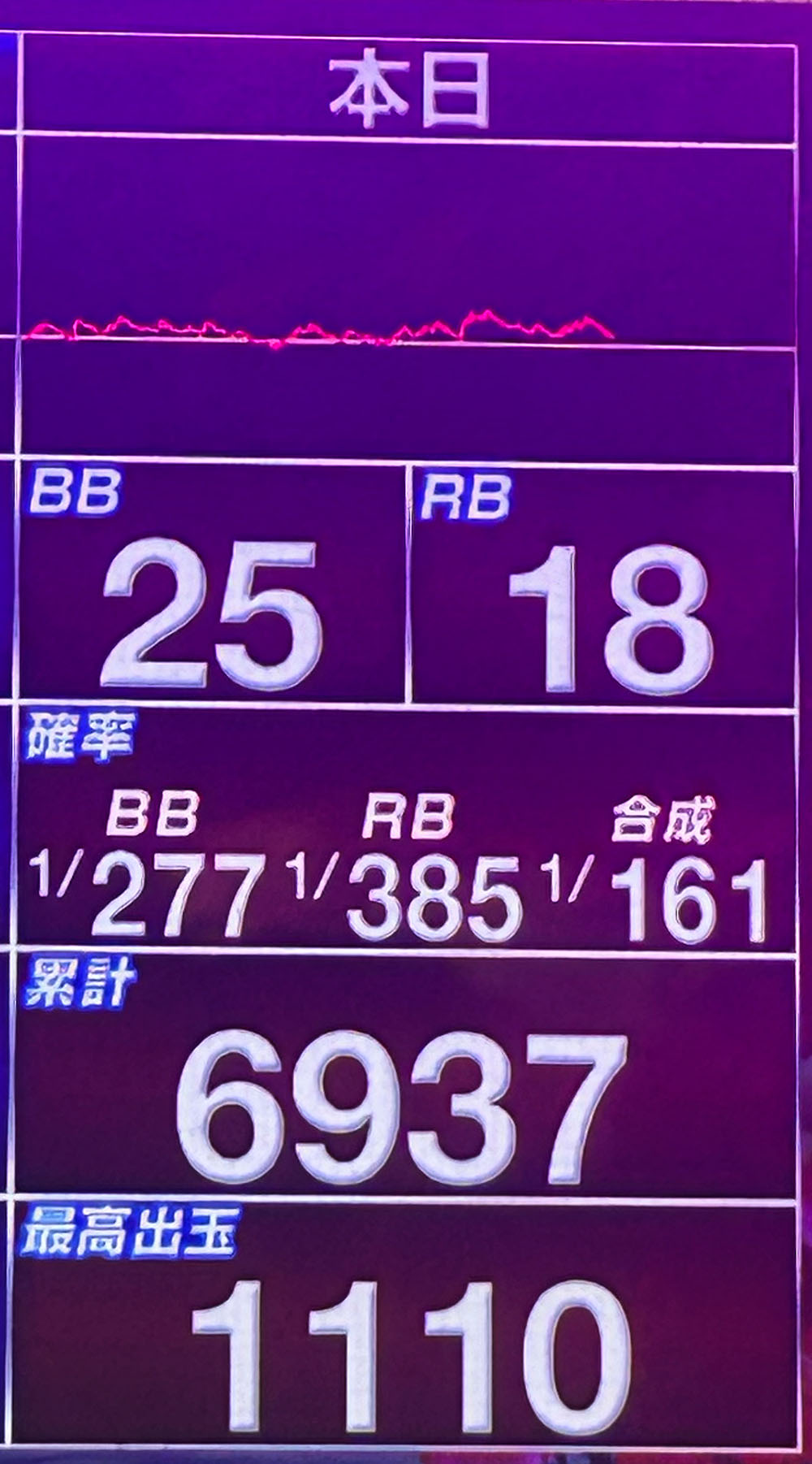 - BIG:25回 1/277(設定3〜4)