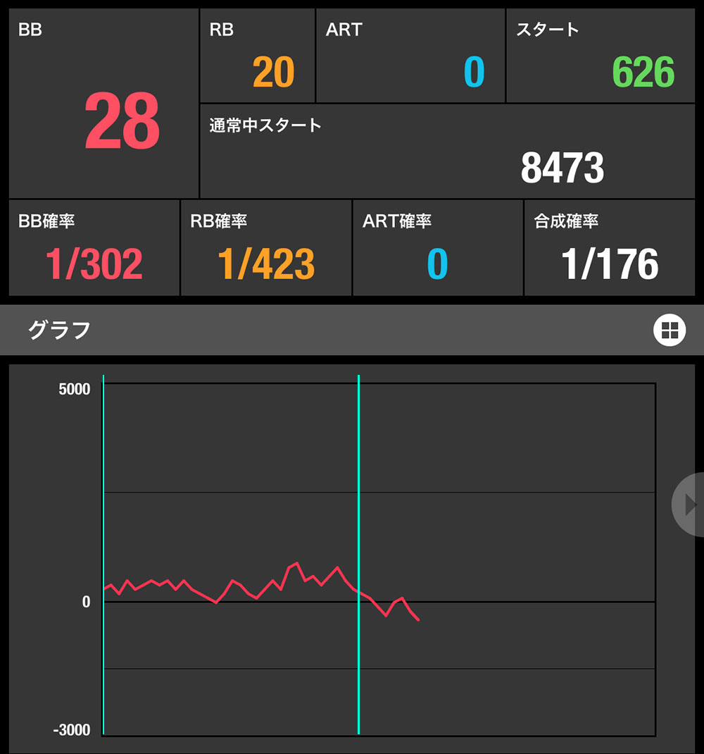 - REG:9回 1/414(設定3〜4)