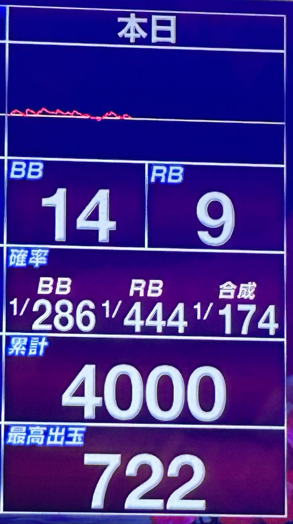 - 合算:1/174(設定2〜3)