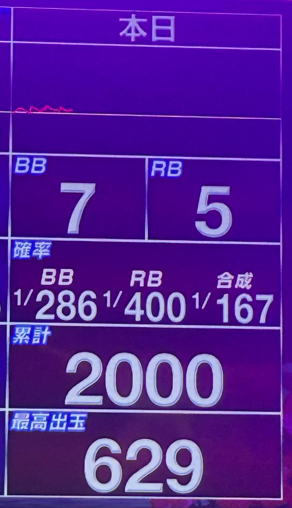 - BIG:7回 1/286(設定2〜3)