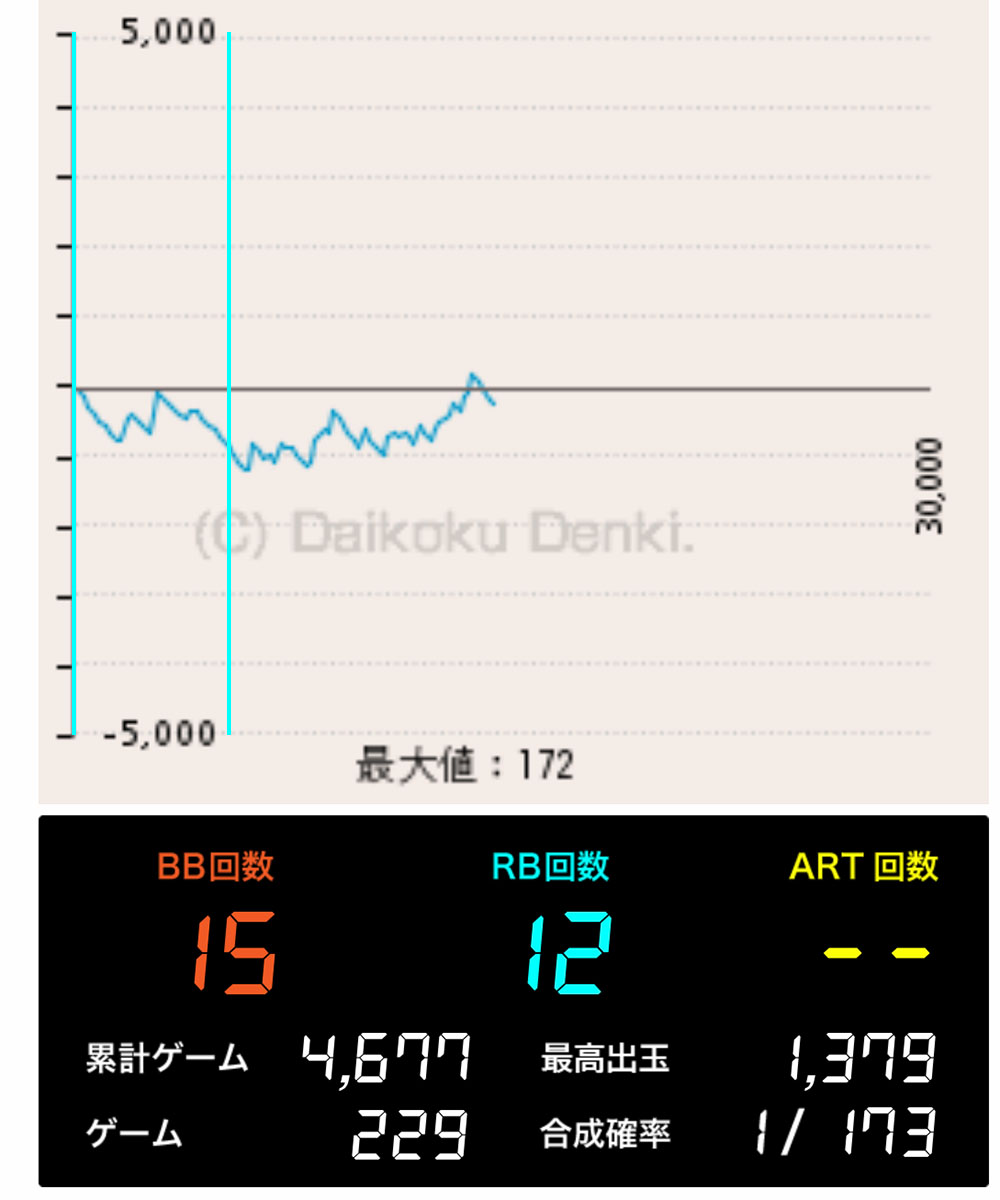 -1200枚(26k)くらいが最底。通常営業日に-1200枚も押せない😭他の台でずっと原点以上を推移してたのに最後1400Gハマって急降下している台も見ました。